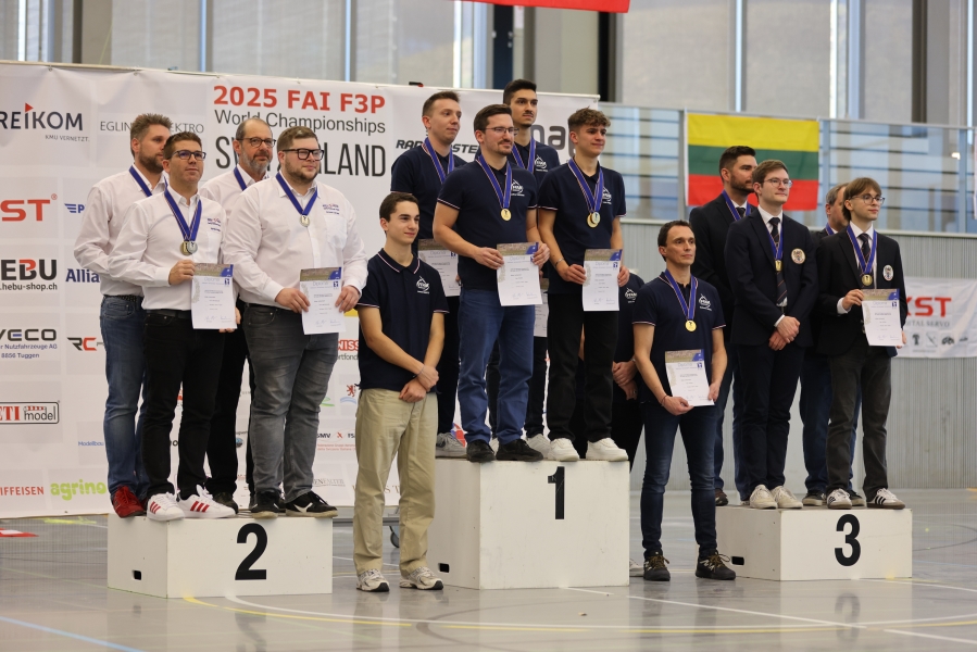 Mit der Siegerehrung und dem Schlussbankett fand die Indoor Kunstflug WM 2025 in Widen AG am vergangenen Samstag ein würdiges Ende. Sylvain Pasini ereichte im klassischen Kunstflug (F3P-A) den 3. Rang und Philipp Schürmann den 5. Rang.
