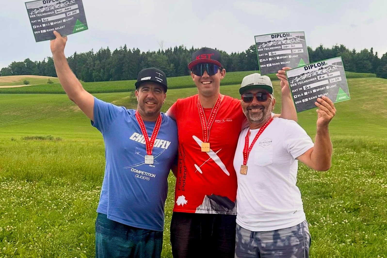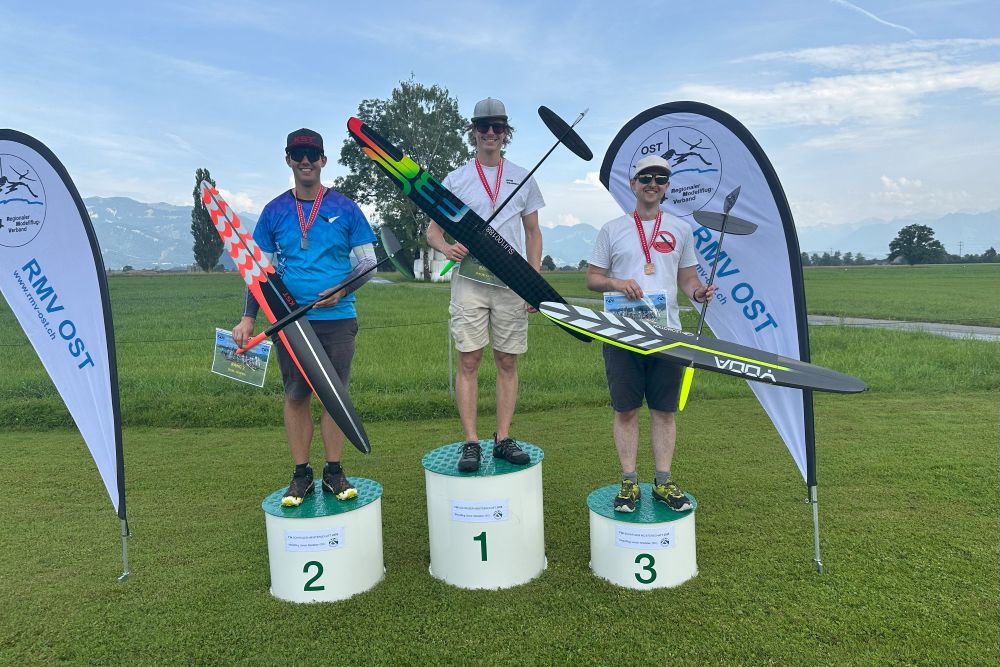Schweizer Meisterschaft im GPS Scale. Das Podest: 1. Rang Cederic Duss, 2. Rang Daniel Aeberli, 3. Rang Oliver Pfister.