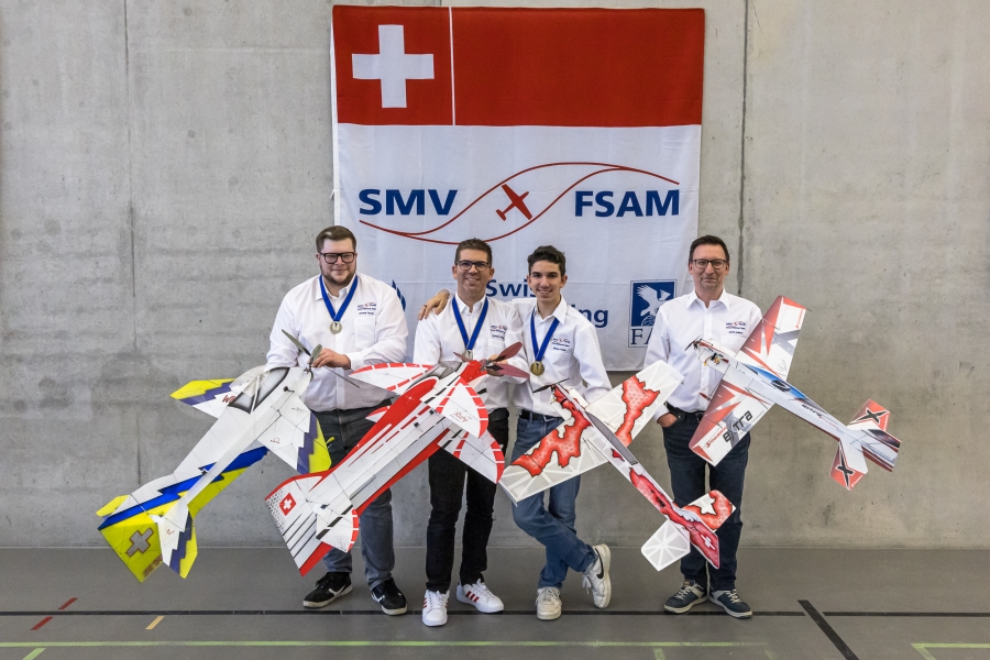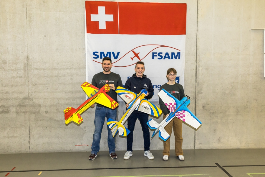 Schweizer Meisterschaft im GPS Scale. Das Podest: 1. Rang Cederic Duss, 2. Rang Daniel Aeberli, 3. Rang Oliver Pfister.