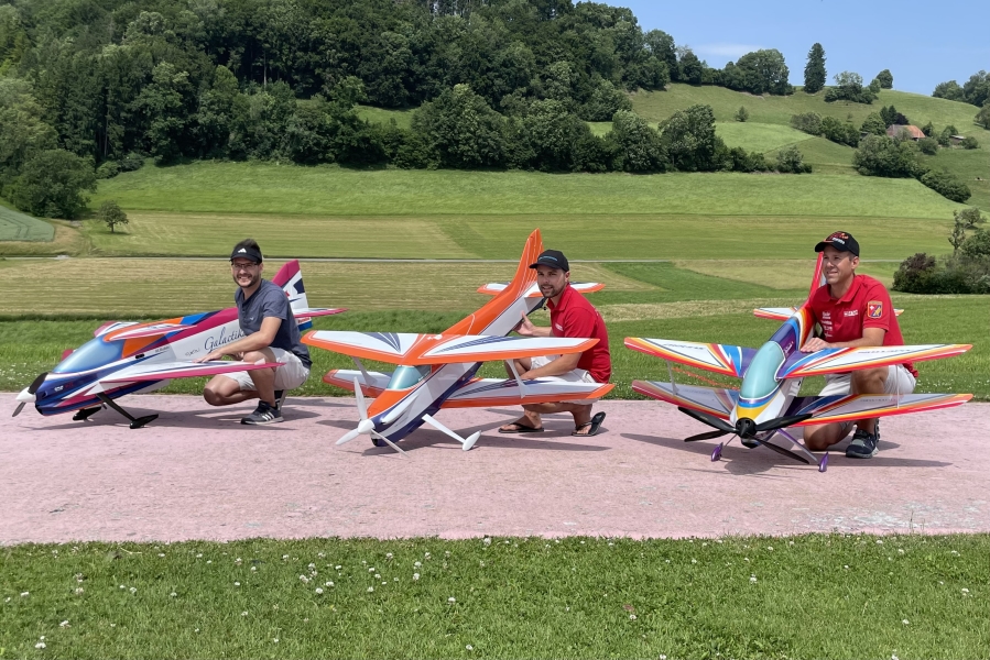 Schweizer Meisterschaft im GPS Scale. Das Podest: 1. Rang Cederic Duss, 2. Rang Daniel Aeberli, 3. Rang Oliver Pfister.