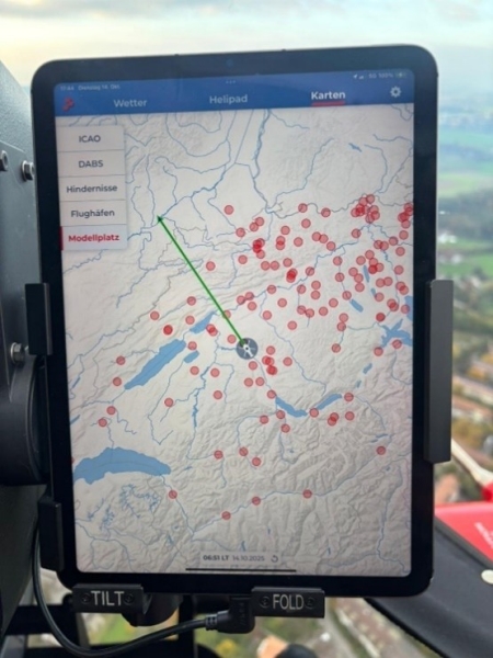 Damit können den Helikoptercrews mittels der Rega App «Pilot Pad Pro» im Flug die Modellflugstandorte sichtbar gemacht werden. Die App «Pilot Pad Pro» ist eine Eigenentwicklung der Rega und erlaubt den Cockpitcrews mit ihren Tablets Zugriff auf aktuelle Flugwetterdaten, Luftfahrthindernisse, Informationen zu Landeplätzen und neu auch den Standort von Modellflugplätzen. Der SMV und die Rega befinden sich schon seit längerer Zeit im Austausch zum Thema Safety. Auch die Visualisierung der Modellflugplätze im Cockpit wurde schon diskutiert, aber die technischen Voraussetzungen waren bisher nicht ausreichend. Mit der Rega eigenen Pilot Pad Pro App sind heute die Voraussetzungen erfüllt. Der SMV hat seine Regionalverbände über das Vorhaben informiert und ausschliesslich positive Rückmeldungen erhalten. Im Sommer wurde die gegenseitige Vereinbarung unterzeichnet und es erfolgte die erste Datenlieferung. Im Herbst erfolgte der erste Import der Daten in die Pilot Pad Pro App und es fanden die ersten Tests im Betrieb statt.
